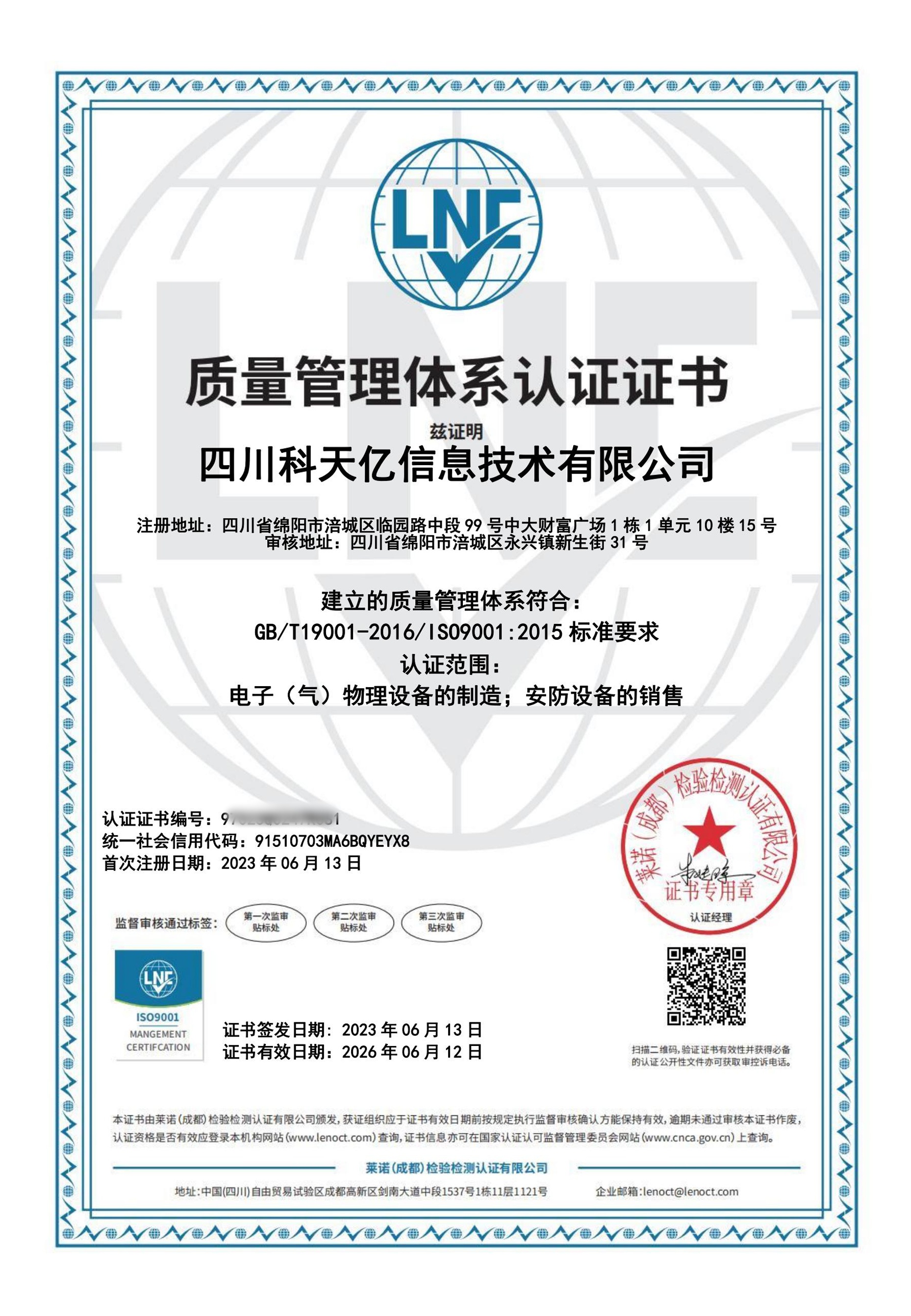 质量体系证书